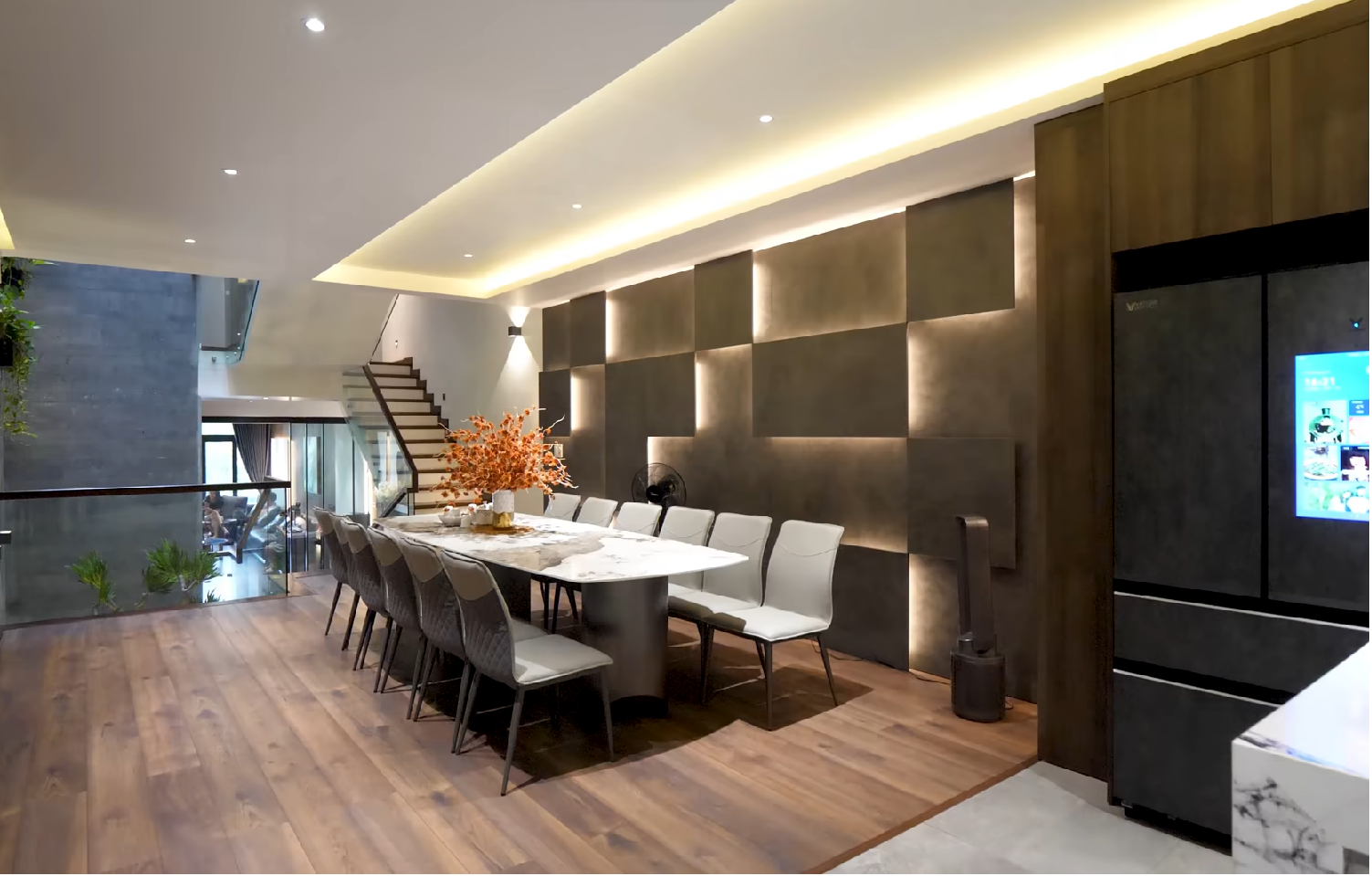 Khám phá một căn hộ "đập thông" tại Vinhomes Symphony, Hà Nội. Căn hộ có diện tích 130m2 với 3 phòng ngủ, sử dụng nhiều thiết bị thông minh smart home và phần nội thất được thiết kế theo phong cách chủ đạo hiện đại sang trọng.